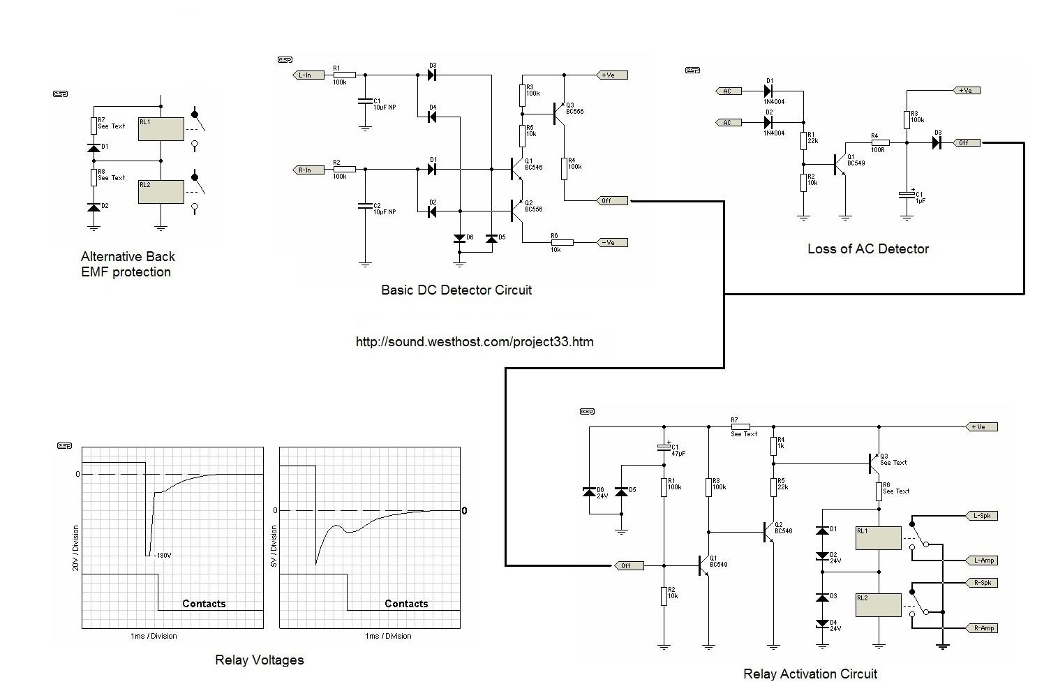 Dün bu şemayı delikli karta hiç bir sorun yaşamadan kurdum. Devre sorunsuz çalışıyor. Pozitif, ya da negatif fark etmez. İstinasız tetiklenip hoparlörü korumaya alıyor. Termal koruması ve Overload koruması yok ama, termal koruma; soğutucuya termik bağlanılarak halledilebilir. Overload koruması üzerinde çalışıyorum. P 33 e overload koruması da eklenebilir sanırım. Devre zaten Röle aktivasyon devresine yapılmış iki eklendiden ibaret.