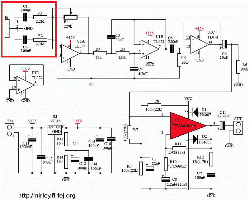Filtrenin beslemesi için amplifikatöre yaptığımız beslemeden faydalanmamız, onun için de beslemenin pozitifi ile gnd arasındaki voltajı bilmemiz lazım diyeceğim ama görünüşe göre TL074 30V'a kadar beslenebiliyor. Bu durumda doğrudan amplifikatör beslemesinin pozitifi ile gndsi filtrenin beslemesi için kullanılabilir. Bu aradaki voltaj en az 18V civarında ise araya 7815'i de koyabiliriz.