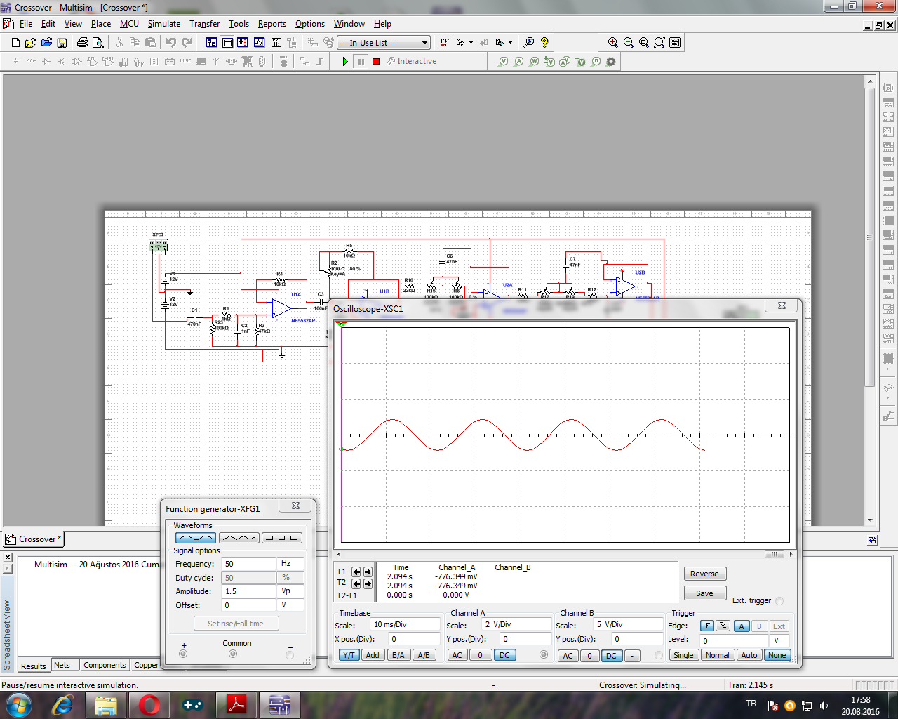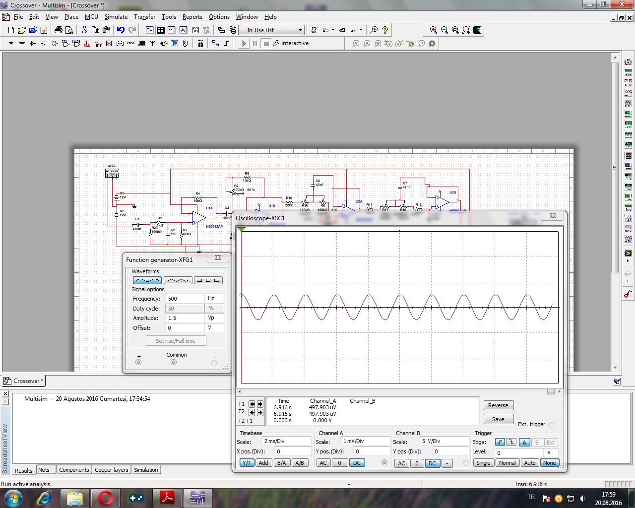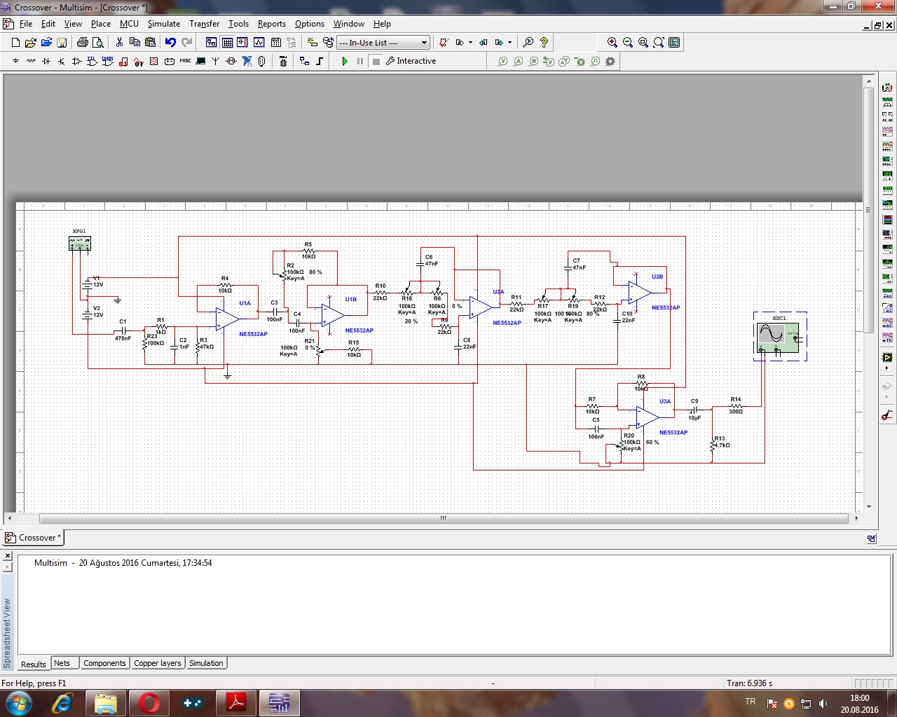 Arkadaşlar bu meşhur devreyi incelemek istedim. Ve çalışma grafiğini sizlere göstermek istedim. Yanlız anlamadığım birşeyler var....... Örneğin bu devreye 500hz verdiğimiz zaman tamamen frekansı geçirmiyor 300hz'de devreye giriyor. Fakat benim mixer'den örneğin 20khz sinyalim geliyor bu 300hz vede aşağısını geçiriyor. Fakat Subwoofer'ım benim örneğin 68 hz - 50 hz - 90 hz 'de köşe frekanslarım daha belirgin. Bu crossover dolayısı ile bu vede istenmeyen frekansları yükseltecek. Vede bu devrenin frekans potları vede q potları vs. ile oynadığımda skopta bir değişkenlik göremiyorum. Tam anlamı ile bu devreyi nasıl test edebiliriz ?