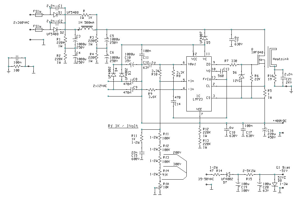regulesiz devrem, 350-360V lara düşünce GU50 çalışmamın beslemesini regule etmeye karar verdim.