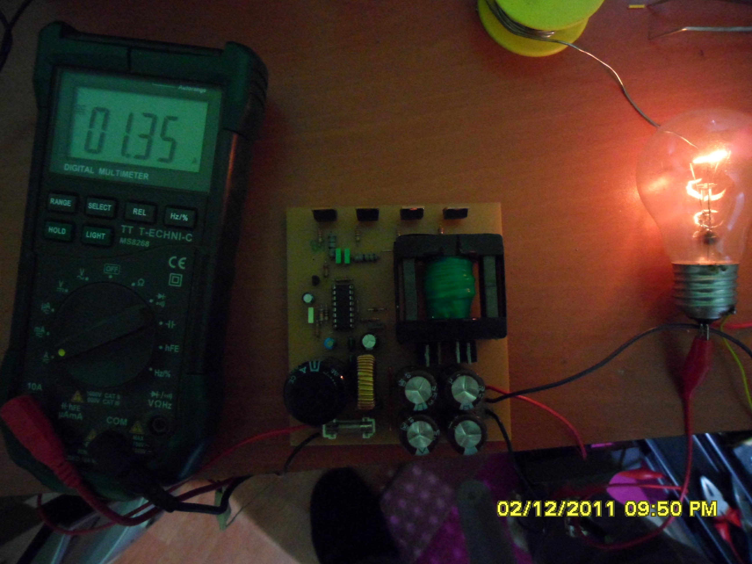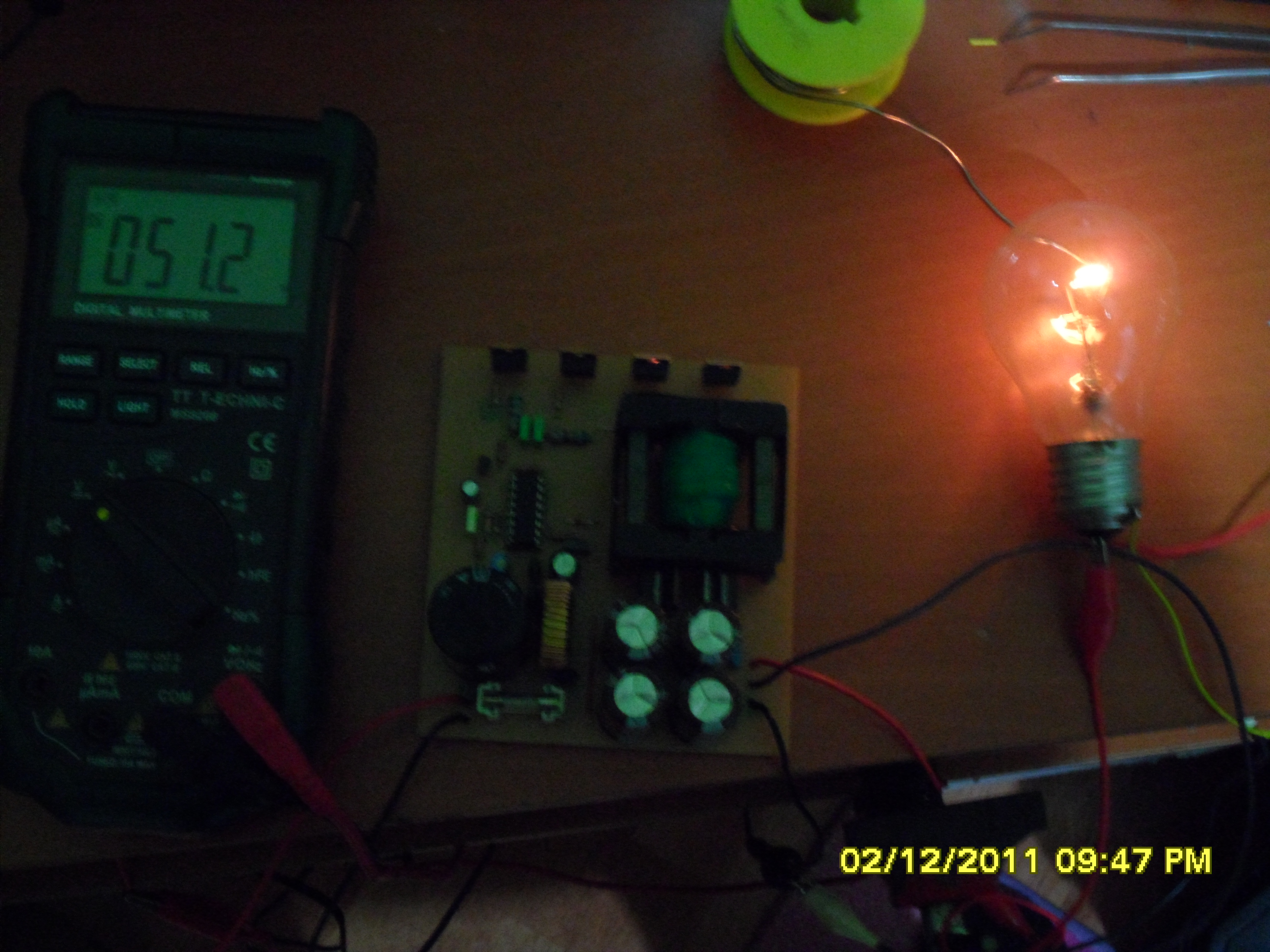 2 adet 100W ampul denemesi cıkıs voltajı bir miktar yukseldi yani devremizde voltaj cokmesi gibi bir durum su an icin yok...