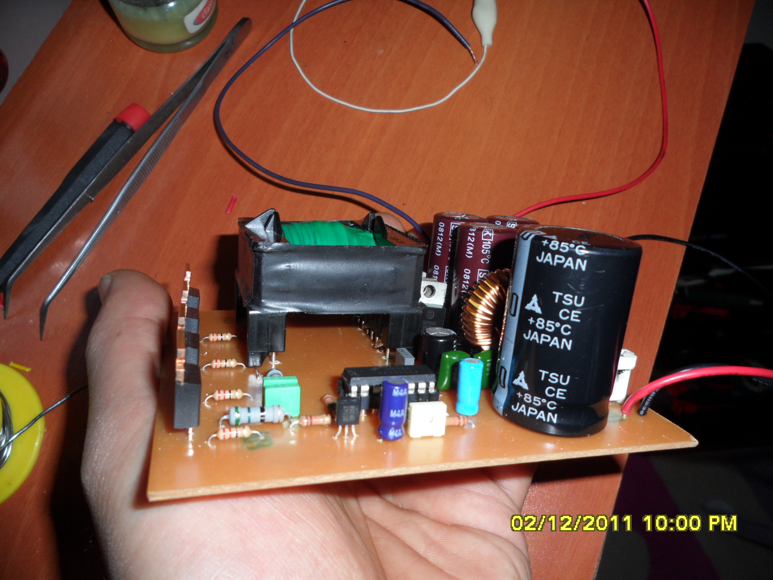 Daha evvel oto amfisi yapmak istedigime dair bir baslık açmıstım.Bu projemin ilk ayagı olan smps bolumunu nihayet bitti ve ilk denemelerini bu kasam yaptım.Trafoyu kendim sardım etd39 nuve uzerinde primer 5x0,5lik telden 2x4 tur sekonder 2x0,8lik telden 2x9 tur olarak sardım çıkıştan ölçtügüm voltaj 2x26 volt civarı.Çıkış boşta iken yaklasık 450ma akım cekiyor.
