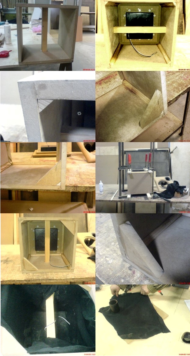 Bu işe girişirken hoparlör ölçümü yapmadık, ya da T/S parametreleri kullanmadık. Almanya'nın en iyi DIY sitelerinden birinin kit halindeki ürünü olduğundan, kabin ölçüleri de hazır geldi. Sadece iç destek vs. konusunda daha önceki tecrübelerimizden yararlanıp biraz hacmini genişlettik. Port hazır ve nasıl yerleştirileceği de önceden belirlenmiş. Dolayısıyla bu aslında bir marangozluk projesi haline geldi.