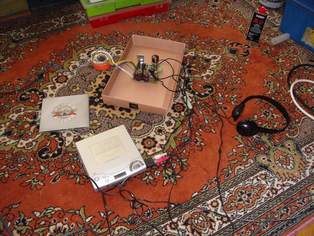 Gelelim sesine; ikinci deneme aşamasını discman'in kulaklık çıkışını buffer a bağlayarak yaptım, buffer çıkışına da kulaklık bağladım, amacım yine farkında olmadığım bir sorunda en kötü ihtimalle kulaklığa zarar gelmesi ve buffer ın yarattığı değişikliği kulaklıkla hissetmek idi, dolayısıyla ampli ile testi en sona bıraktım. Kulaklık çıkışının gücü düşük olduğundan buffer'ın giriş hassasiyetine yetmedi zannedersem, çıkışta ses discman in direk verdiğinden bariz bir şekilde az idi. Ama sesteki detay, enstrümanların doğallığı bu on dakikalık ön testte bile kendini belli etti. Yine çalışmada herhangi bir sorun yok.