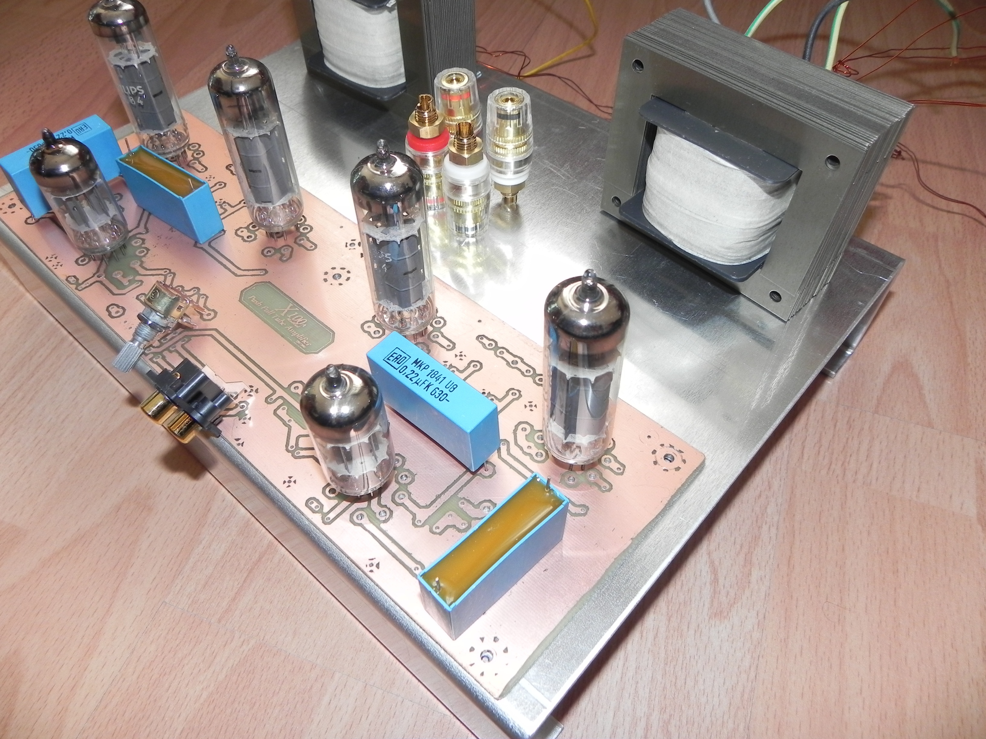 Trafo 3primere ayrılıp (orta primerde kendi arasında yarı yarıya ayrıldı)aralarına 2şer sekonder sarıldı.Ei84 35paketlik bir trafoya primer 3200tur sekonder 4ohm için 70-8ohm için 100tur dur.Ultra lineer koymadım ama birçok uygulamada ultra lineere primerin %35-43ü kadar ayrılır fakat bence %50 olmalıdır eski üstadlar herzaman bunu yapmıştır.