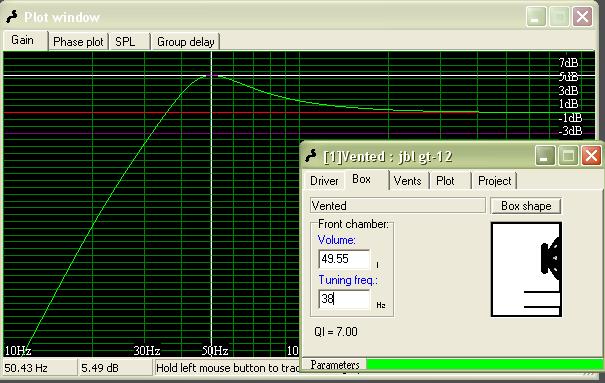 bu şekilde olması gerekli değil midir bu JBL G5-12 nin orjinal kabin hesabının ve TSP leri girilerek aynı proğramda (bass box 6 programında da hesaplanmışve aynı eğri alınmıştır)frekans cevabıdır.