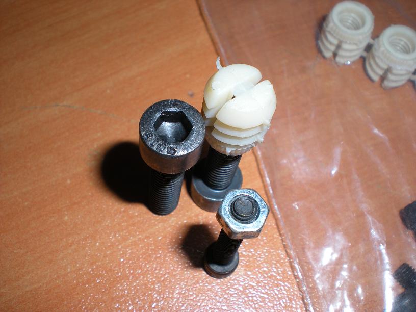 Ersoy'un dediği gibi o plastikleri kesinlikle kullanma derim, onun yerine ahşap somunu kullanmalısın. Kabinler bittiği için bu somunları ön panelin arkasına çakamayacaksın. Ama bir tane vidayı geniş pullar ve lastikle destekleyip bu somunları hoparlörü yerleştirmeden önce çektirerek iyice mdf'ye gömmelisin. Hoparlörler birlikte de yapılabilir ama bu durumda somunun ayakları bazen kıvrılabiliyor ve mdf'yi tutmuyor.