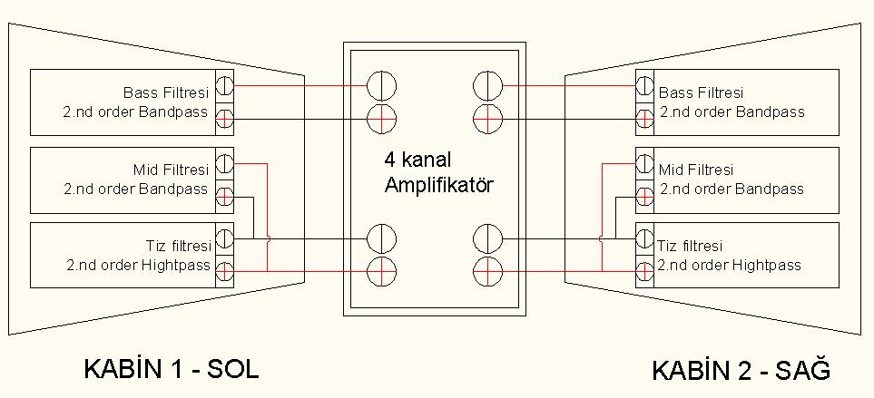 Bass ve mid filtresi bir plakette, tiz filtresi ikinci kat olan ayrı bir plakette olacak şekilde ancak sığdı baza altına,