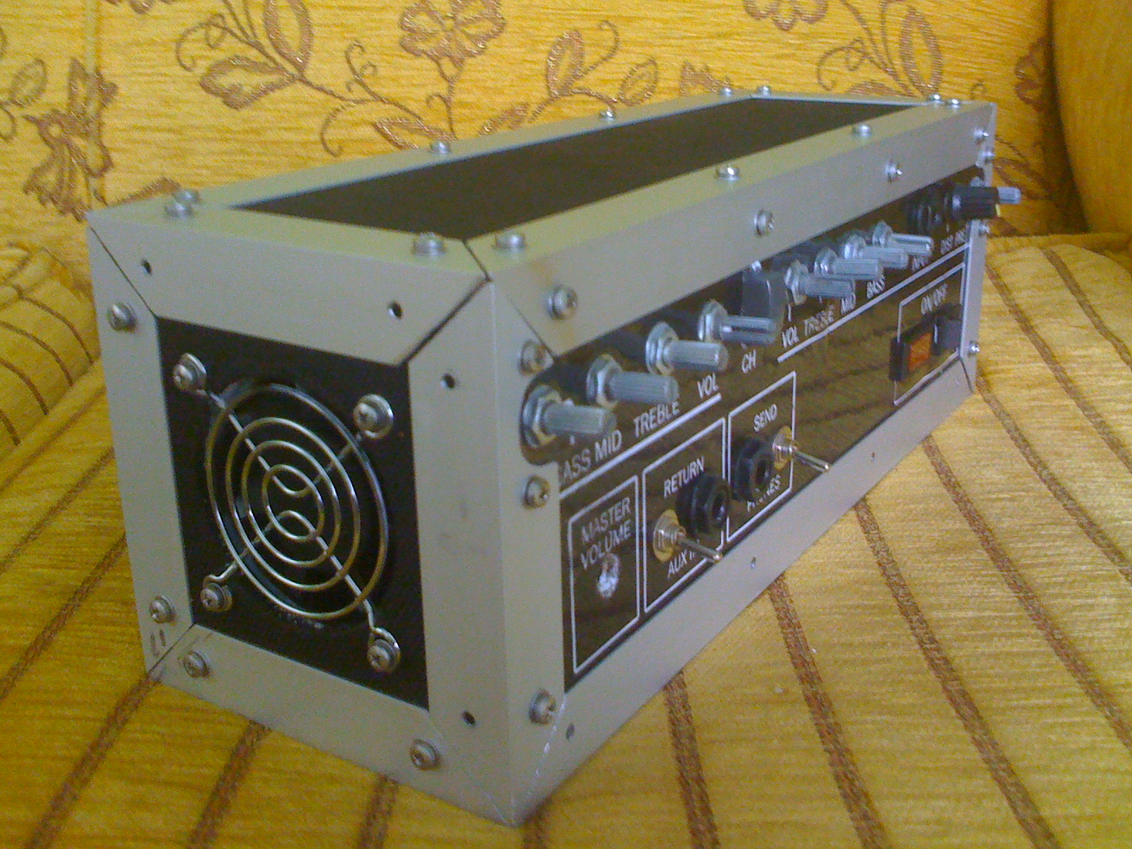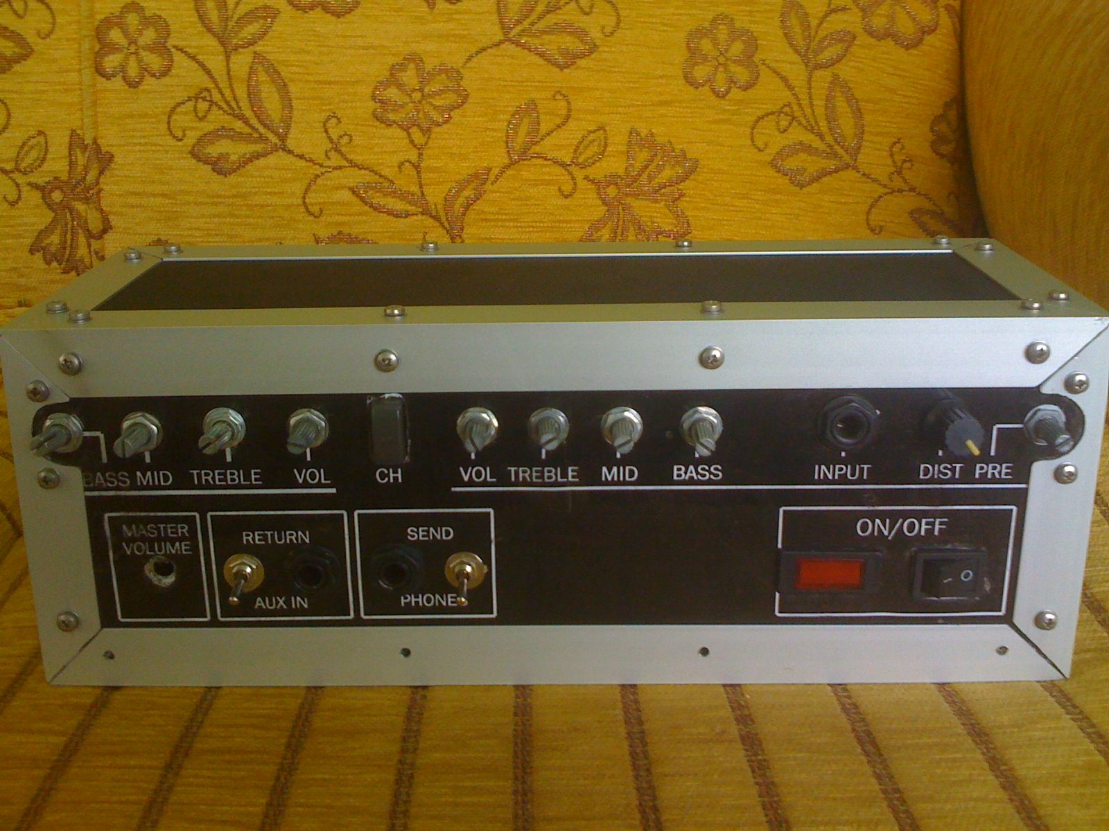 Yaklaşık üç sene önce forumda yapmak istediğim amfi için sorular sormuş ve üstatların verdiği değerli cevaplarla kendi preamp'ımı yapmıştım.Üniversiteden arkadaşlarım (Elektrogitarla ilgilenenler), yaptığım preampın sesini beğendi ve doğal olarak kendileri içinde istediler.Aynı devreden iki tane daha yaptım ve teslim ettim.Son olarak aynı devreyi uzun zamandır teknik destek sağladığım müzik grubum Güruh'un ritm gitaristi arkadaşım da isteyince içinde poweramp ve preamp katı olan bir amfi nam-ı diğer "kafa amfisi" yapmaya karar verdim ve nihayet projenin son safhasına geldim.