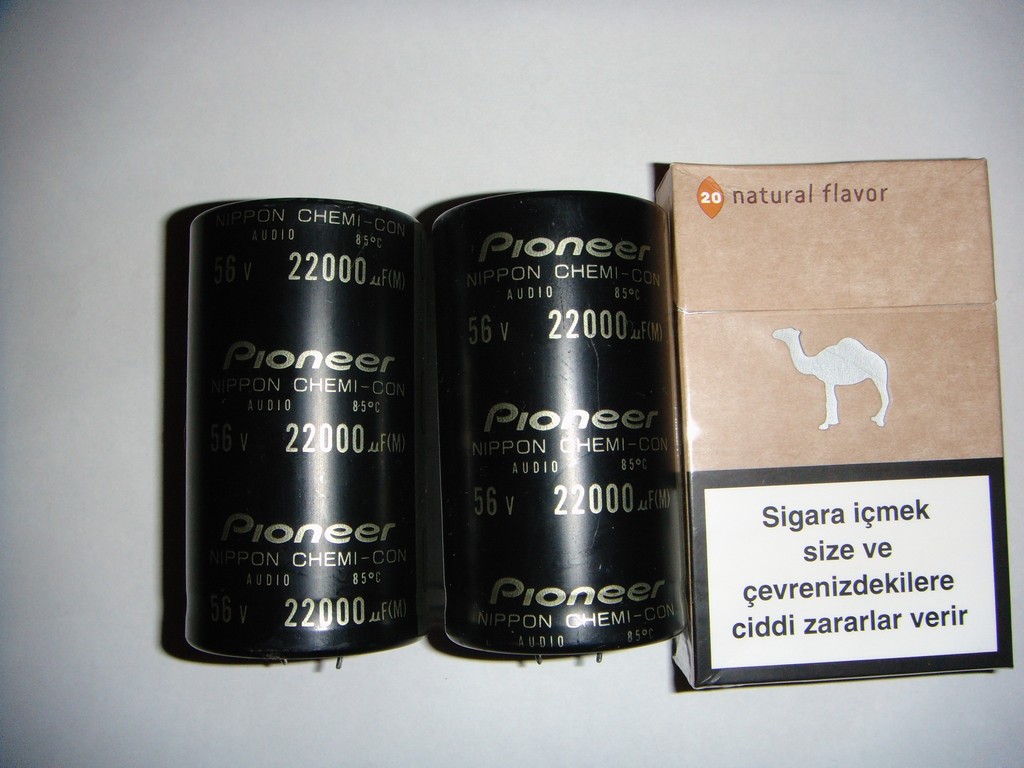 BYW 29 ayrık diyotlar, rifa metallized paper bypass'lar filan olacak, ana rezervuarlara ise henüz karar veremedim, şu an elimdeki en kaliteli seçenekler pioneer elite serisi avr'den çıkma nippon chemi-con 22,000uF/56V snap-in'ler, (üzerlerinde audio filan yazıyo, ancak custom parçalar olduğundan bi datasheet veya detaylı bilgi bulamadım. Diğer opsiyon ise bugün karaköyü didiklerken bulduğum rifa peh-169'lar, bunlar 10,000uF/63V ancak diğerlerinden epeyce büyük. Ama yanlış hatırlamıyorsam Dr. esr değerleri ve ripple kapasitelerinin oldukça iyi olduğundan bahsetmişti. Şimdi sizce hangisini kullanayım güç kaynağı için??
