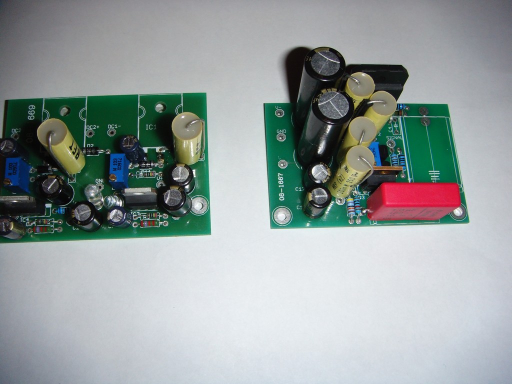 Sıra jfet buffer'lı chipamp'imizde. Ampli-regüle ve dağıtım kartlarının montajı bitmiş bulunmakta, bu projede malzemelere diğer projelerde olduğundan daha fazla özen gösterdim, (mcap sinyal kon., wima mkp bootstrap, bourns trimpot, komple match'li metalfilm dirençler finder röle vs.) hatta bazı kısımlarda "overkill" olarak nitelendirilebilecek parçalar var. (regüle ve ampli kartlarındaki bütün elektrolitikler panasonic fm-fc, bütün 100n bypasslar rft mkp x2 gibi).