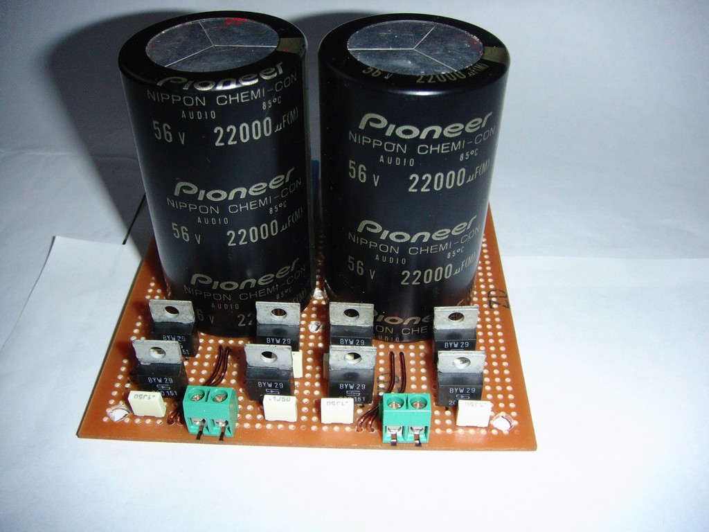 Besleme kondansatörleri: Nippon Chemi-Con audio pair, 22.000uF/56V
