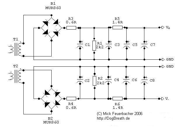 Abi maksat fon beyaz olsun :D yoksa üzerindekiler belli olmuyo. Besleme için bikaç devreden çalıntı yaptım, ayrık diyotlar ve bypasslar chipamp.com ya da audiosector un gainclone kitlerinde kullanılıyor, Dr da ana rezervuarlardan sonra 1uF + 100n'nin iyi sonuç verdiğini yazmıştı biryerde, 2,2k direnci yük olarak koydum (kondansatörü boşaltsın diye) 1,5nF+0,47 ohm kombinasyonu da vardı biyerde, şemayı tasarlayan olmazsa olmaz demişti, hangi amplinin şemasıydı, kimindi hatırlamıyorum ama...