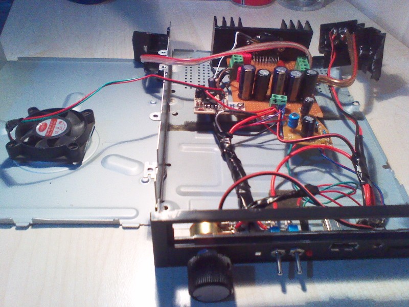 Bizim forumdaki üstatlardan birinin imzasında yazan bir cümle var (kimindi unuttum affola) "Yaptım yaptım kutulayamadım" Bir çoğumuz aynı durumda... bu güne dek yüzlerce amplifikatör yaptım on tane zor kutulamışımdır. Şu an ayaklarımın altında ampli var yani uzatsam ayağım değiyor hatta hoparlör kabloları açıkta kaldığından daralan makaronla birbirine değmesini engelledim. Ama arada ısındı mı diye ayağımla amplifikatörün soğutucusunu kontrol ediyorum:) Yalnız güç kaynağını kutuya koydum neme lazım alışkanlıkla 220 volt uçlarında gerilim var mı diye parmağı bandırmak söz konusu