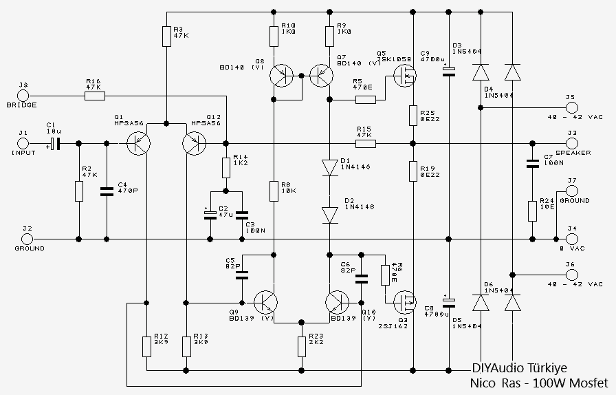 Devrelere gelirsek ilk devre olan RAS100 ise Nico'nun sesini en beğendiği tasarımlardan birisidir. Hitachi uygulama notlarına dayanan bu sade tasarımın daha güçlü bir benzeri de arkadaşı Rod Elliott'ın sitesinde mevcuttur, zaten bizim sitede de RAS300 adıyla bir uyarlaması var. Açıkcası kararsızlık anlamında bir sorunu da yoktur, çeşitli versiyonlarını yaptım, hatta bir eski iki de yeni versiyonu beklemede.