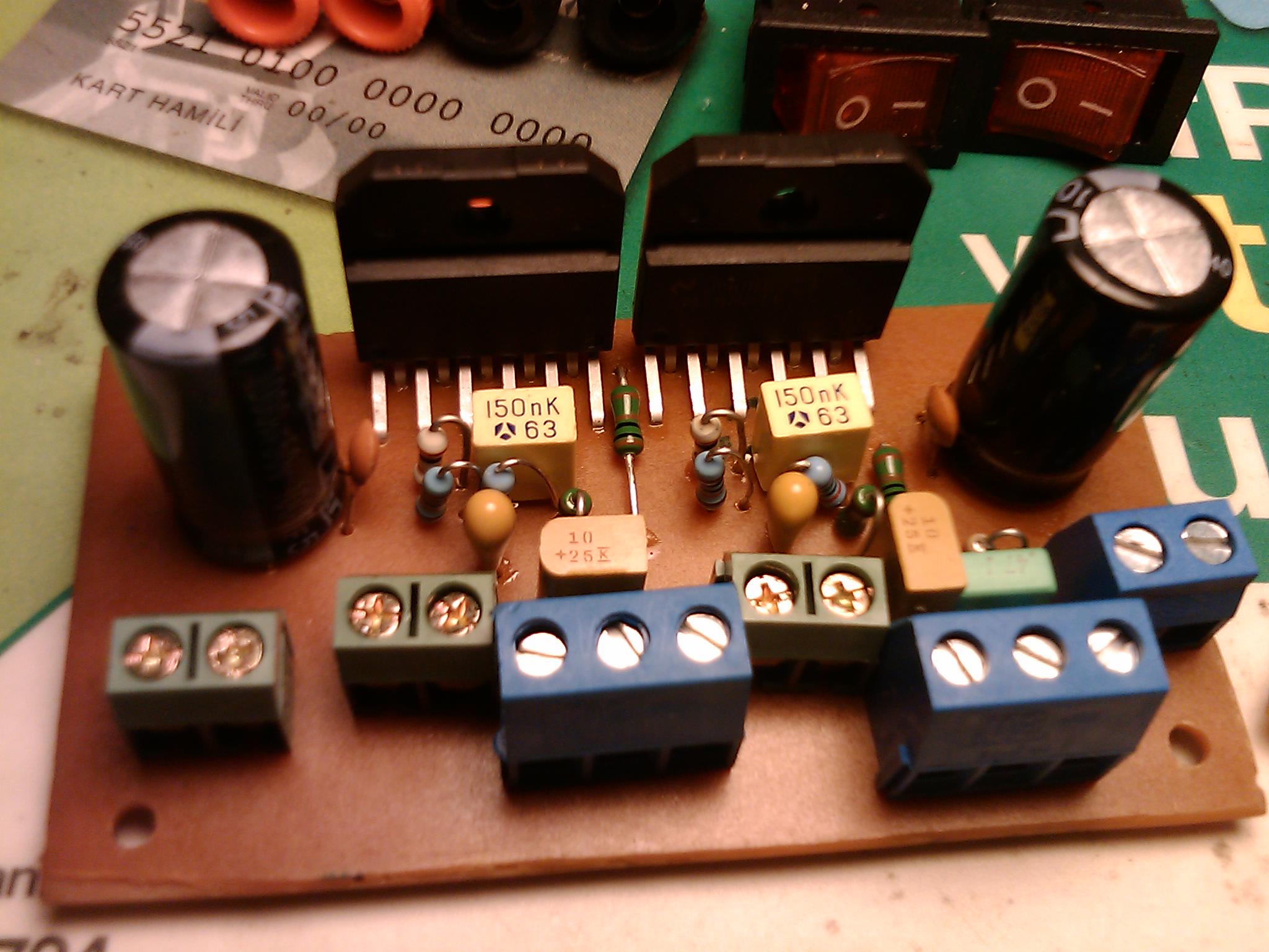 digit yazdı:Selam,forumlarda edindiğim genel kanılara bakacak olursak lm3886 nın temiz sesinden ötürü tavsiyelerde bulunulmasıydı merak konusu oldu bende ve gain clone projesini bende yaptım şuan kullanıyorum ses kalitesi fena değil elimde mevcut bulunan çıkışında stk4141kullanılmış markalı müzik setimle arasında ufak farkların olması buda stk nın biraz daha tatminkar olmasıdır.yani ses detayının biraz fazla olmasıydı.fakat yinede müzik severleri tatmin edecek seviyede diyebilirim.devrede metal film direnç,tantal kond.v.s.trafo orta ucu ayrılmış 2x24 şeklinde kullandım toroid alamadım eldeki mevcut trafoyu değerlendirdim.devremi tavsiye edilen tüm elemanlarla birebir yaptım soğutucu olarakta 2 ad.p4 soğutucu kullandım ama ısı gerçekten çok fazla takviye fan veya daha büyük kütleli petek soğutucuya ihtiyaç duyuluyor.herkese kolay gelsin.