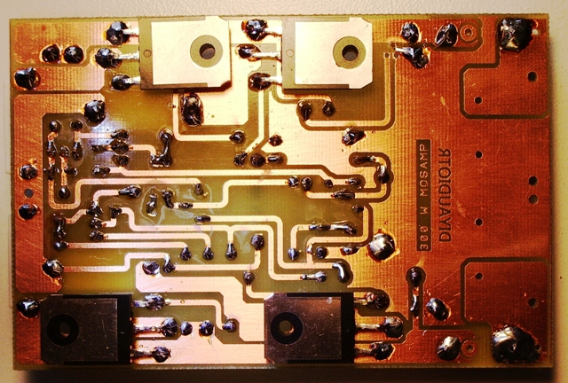Bu devrenin yapımında mosfet olarak Ersoy hem yurtdışından eşlenik olarak getirtilenleri de hem de Yılmazoğlu'nda mevcut olanları, ben ise Yılmazoğlu'ndan aldıklarımı kullandım. Ersoy arada ses farkı oluşturacak bir özellik farketmediğini söyledi, zaten devrenin genel yapısı da bunu tolere edecek gibi ama aslında en iyisi AB sınıfı çalışmada simetri sorunu yaratabilecek bu konuyu gözardı edebilmemizi sağlayan bir özellik katmak. Bu da basit bir trimpot ile sağlanabiliyor. Mevcut baskılı devrede bu trimpot yok ama yeni bir versiyonu buna uygun düzenlendi. Baskılı devre olarak bu daha güncel ama sitedekinden daha fazla bir farkı yok, sadece önceki mesajımda bahsettiğim eklentiler var.
