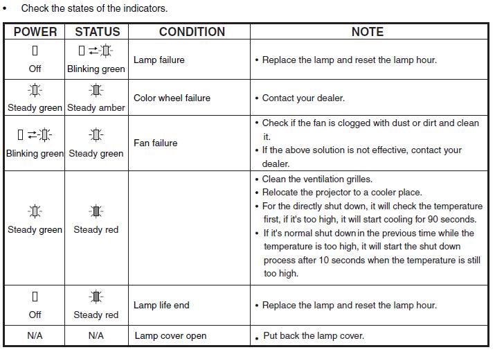 lamba tımerını sıfırladım kapaklar kapalı oldugu halde lamba yıne yanmadı dvd player baglı dvd player baglamadan ışık verırmı powere basıyom yeşil yanıyor status ışıgı yanıp sönüyor yeşil sonra status kırmızı oluyor . power yeşil yanıp kırmızı oluyor fanlar normal çalışıyor bu arada
