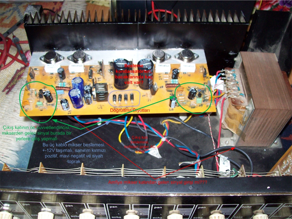 boramt yazdı:Demişsiniz ki çıkış katına yani amfime giden sinyal kablolarına dokunun, evet bu kablolar mixer in sağ ve sol ana volumlerin (üerinde bas,tiz ,eko da var)bağlı olduğu karttan çıkıyor anfiye gidiyor dediğiniz gibi dokunuyorum ama ses yok ....