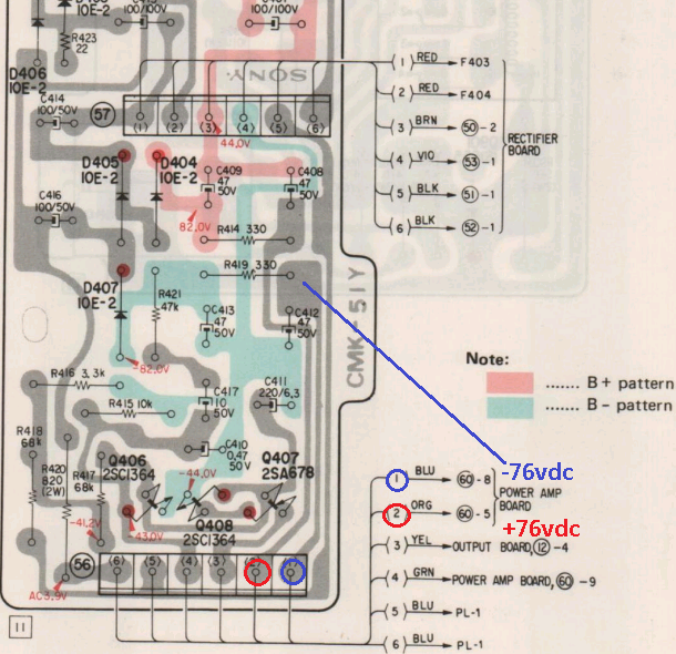 +76V iptal, +44V boşalan +76V noktasına verilecek.