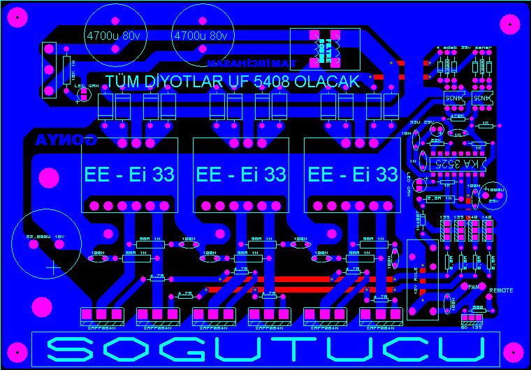tiger41 yazdı:Arkadaslar hata yaptım yani soyleki henuz bu konuda tecrubem olmadıgından oncelikle 150W lık olan versiyondan baslamak istedim fakat bunu mesajımda belirtmeyi ve verdigim baskılı devreninde 150W lık versiyona ait oldugunu soylemeyi unutmusum bundan dolayı ozur dilerim 600W lık oldugu soylenen devre asagıdadır...